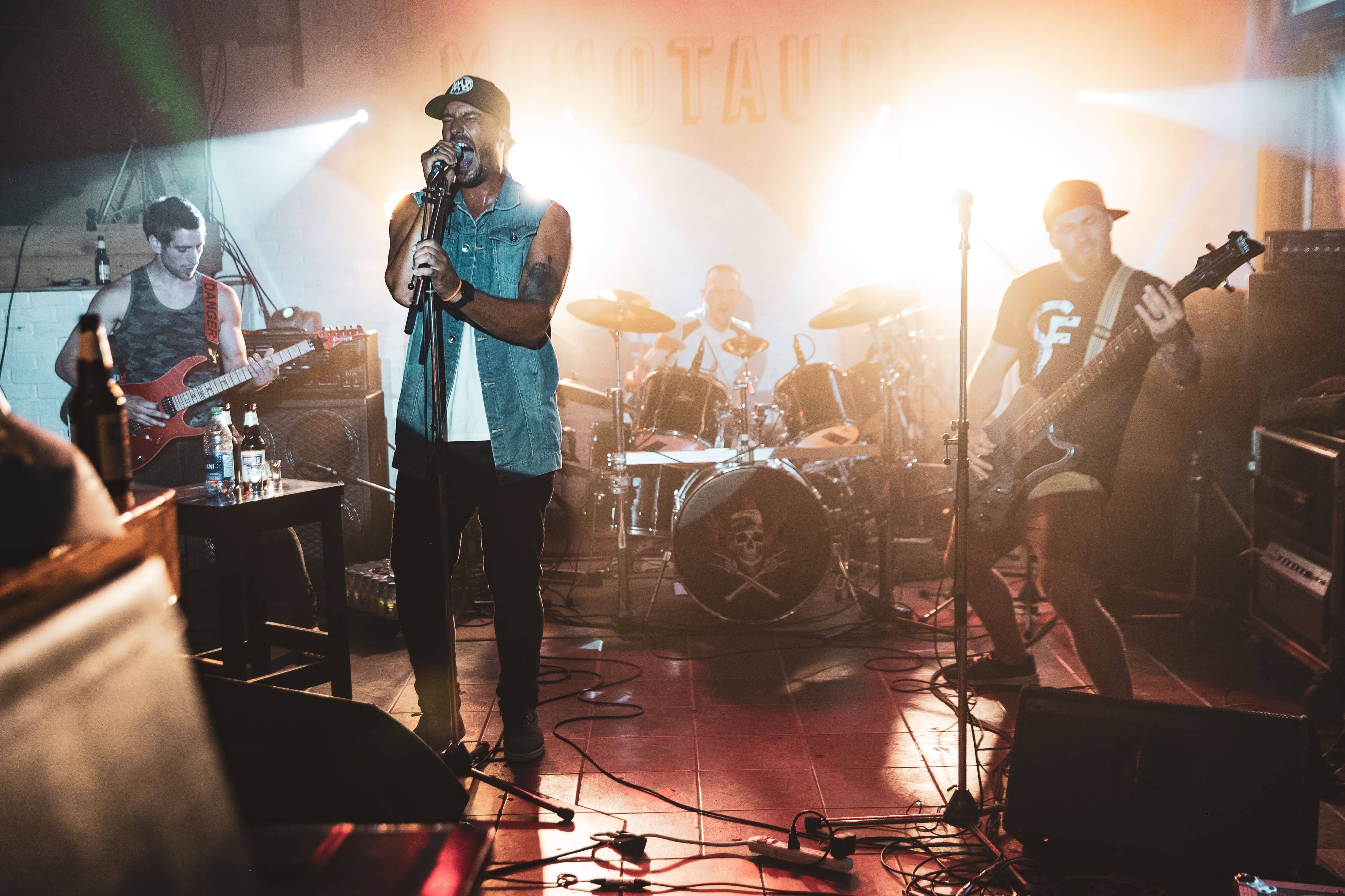 And about the virtual release show: that was just fun. We live on the provincial border between Ontario and Quebec, so the Covid regulations are different between the two at first, we scheduled for a venue in Ottawa since we were allowed to do it with a crowd. When the Covid cases went up, they decided to shut everything back down like a week before our virtual show had to be recorded so we moved it to the Quebec side where things were open, however, all the bars had already bands booked. At this point, we were a week away and I have a buddy in a motorcycle garage, CAD motorsport, and it’s a bike shop with this big, big garage so we set up a TV studio in a bike shop and ended up doing it there, it was pretty cool.