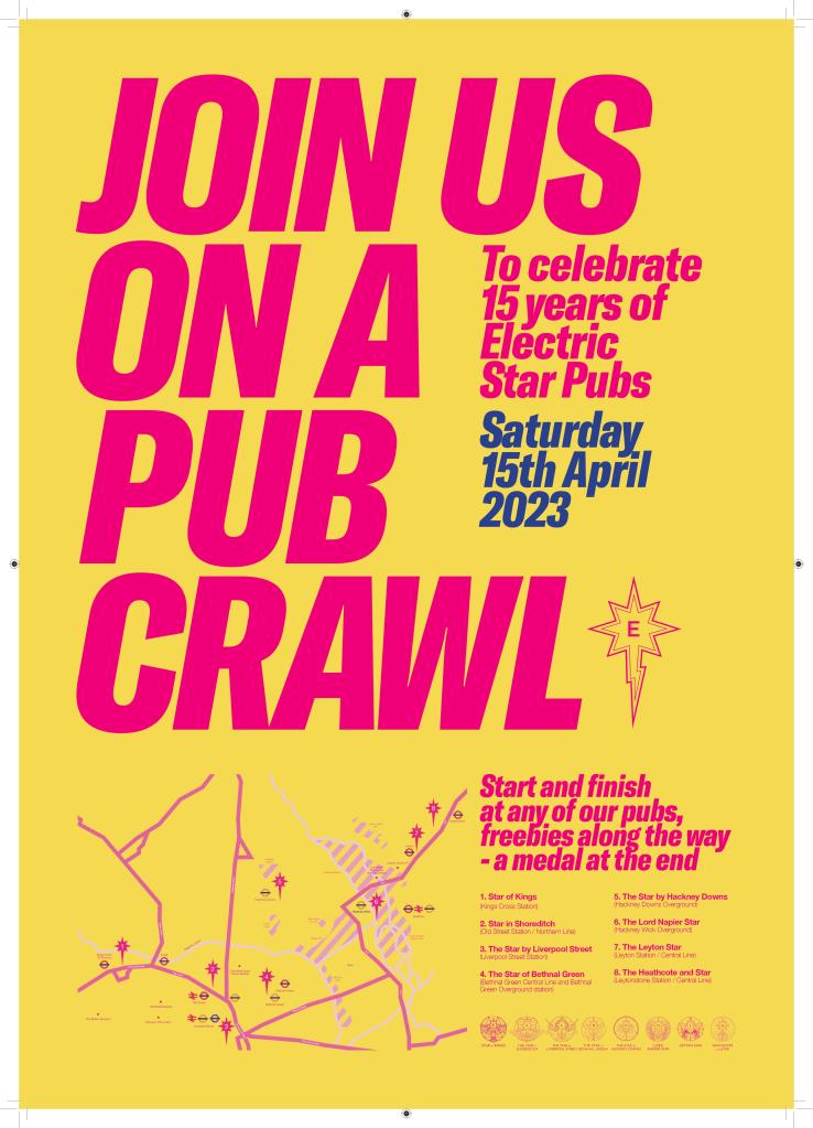 This April 15th, celebrate 15 years of Electric Star Pubs by joining their pub crawl across all 8 locations.